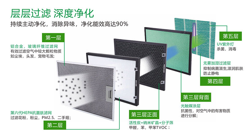 传统的家用空气净化器采用的是较低标准过滤技术,一般能去除较大可吸入颗粒物,包括少量PM2.5、花粉等。但是对于甲醛有害气体的吸附非常有限,并且不能杀菌,不能去除可进入人体血液致病的更小粒径颗粒物,甚至释放臭氧,普遍存在较严重的二次污染。