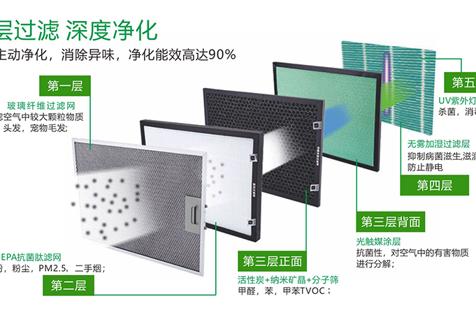 在过滤网耗品上边,普林森空气净化器的过滤网使用期就比一般知名品牌的空气净化器多一倍,一个顶2个。为何区别那么大呢?由此可见就是说过滤网应用的材料和清洁技术性不一样。一般的空气净化器通常全是选用活性碳过滤网和HEPA过滤网,而普林森空气净化器选用的是NMC纳米矿晶和APP HEPA抑菌技,不但可以大大增加吸咐量,在清洁实际效果层面,也比一般的提高了6-9倍。