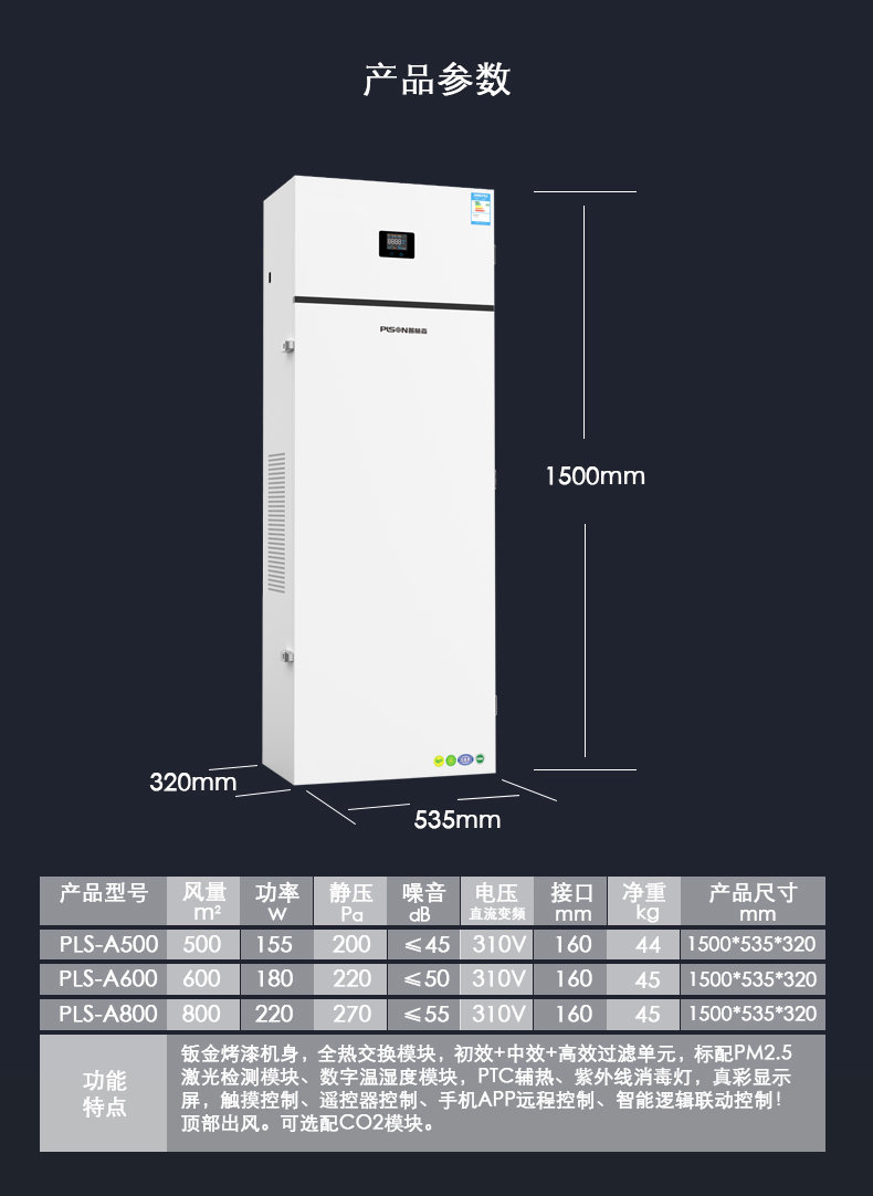 PLSON普林森学校教室用柜式式全热交换新风系统 PLS- A600