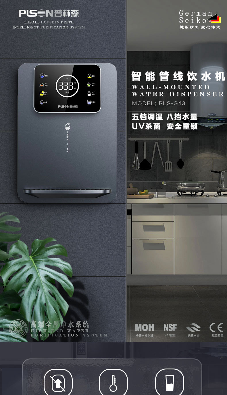 普林森(PLSON)即热式壁挂管线机饮水机G13