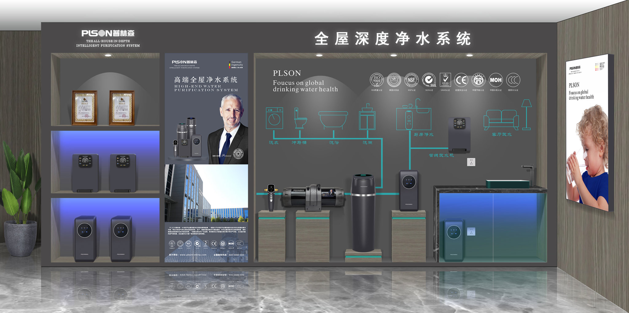 PLSON普林森以专注、创新、务实的品牌理念,产品自主研发生产,高端统一的VI品牌形象,已成为业内品牌效仿的样板